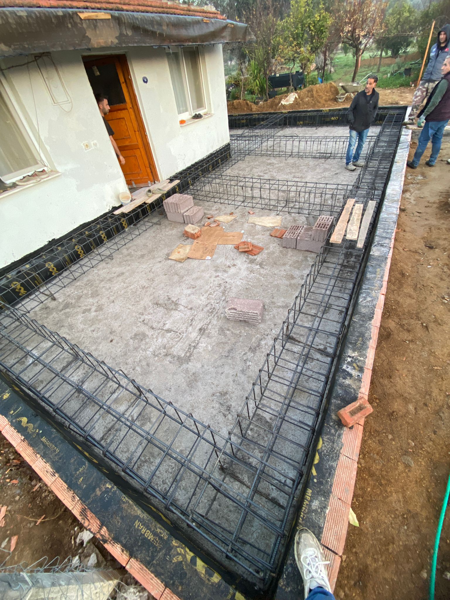Zemin kepçe ile kodunda kazılarak temel döküm haline getirildi. Zemine gru beton atılarak bohçalama duvar örüldü. Daha sonra zemin ve duvarlar P300 membran ile yalıtımı yapıldı. Membran üstüne koruyucu beton atılarak temel hatları yapıldı. Demir donatılar yapıldıktan sonra temel iç bölmeleri örülüp dolgusu yapıldı. Dolgudan sonra zemin üstü çelik hasırla döşenip su basmanı C30 37 hazır beton döküldü. Zemin üstü kolonla dökültükten sonra hasır döküldü. Aynı zamanda topraklaması da yapıldı.