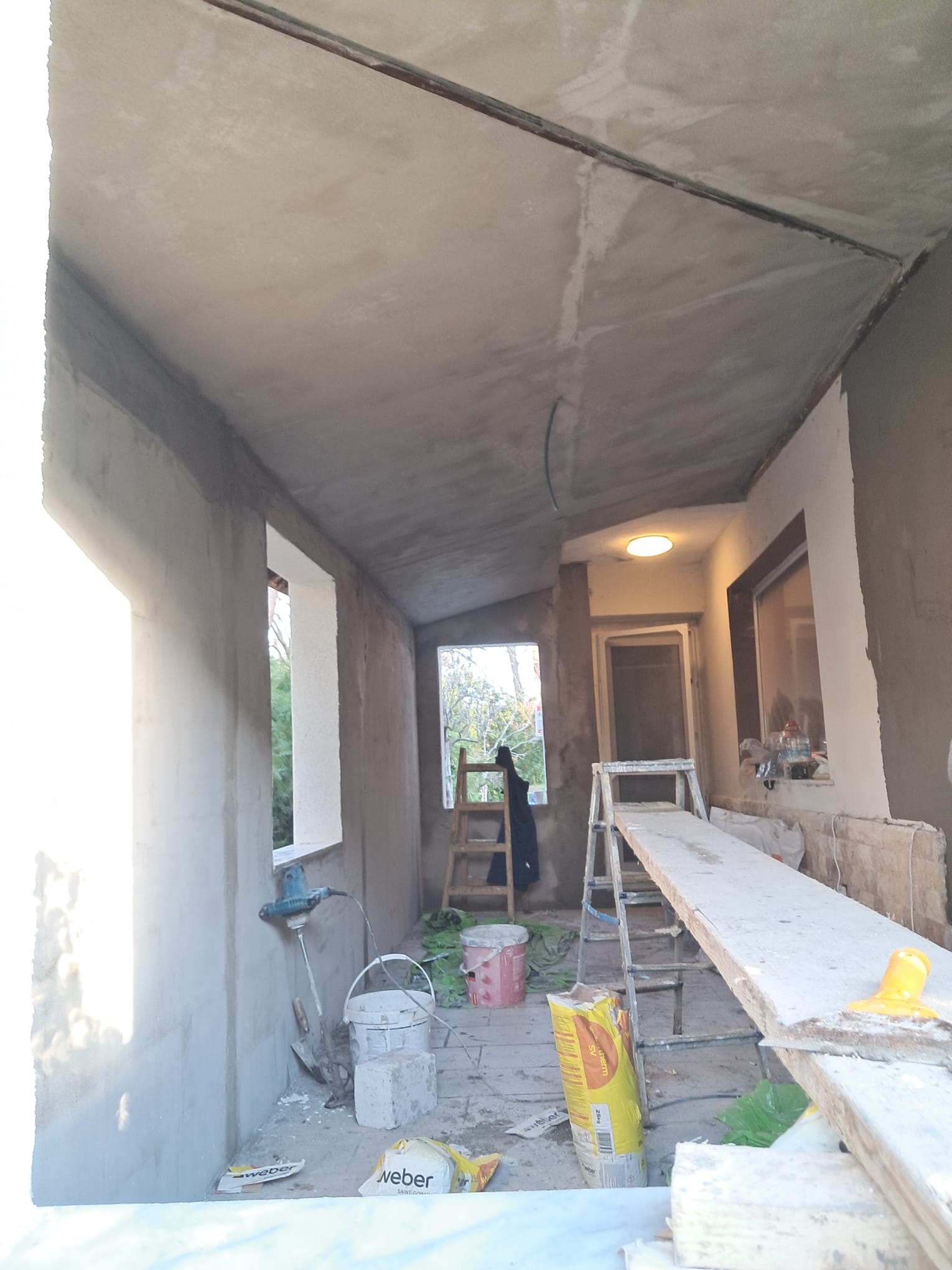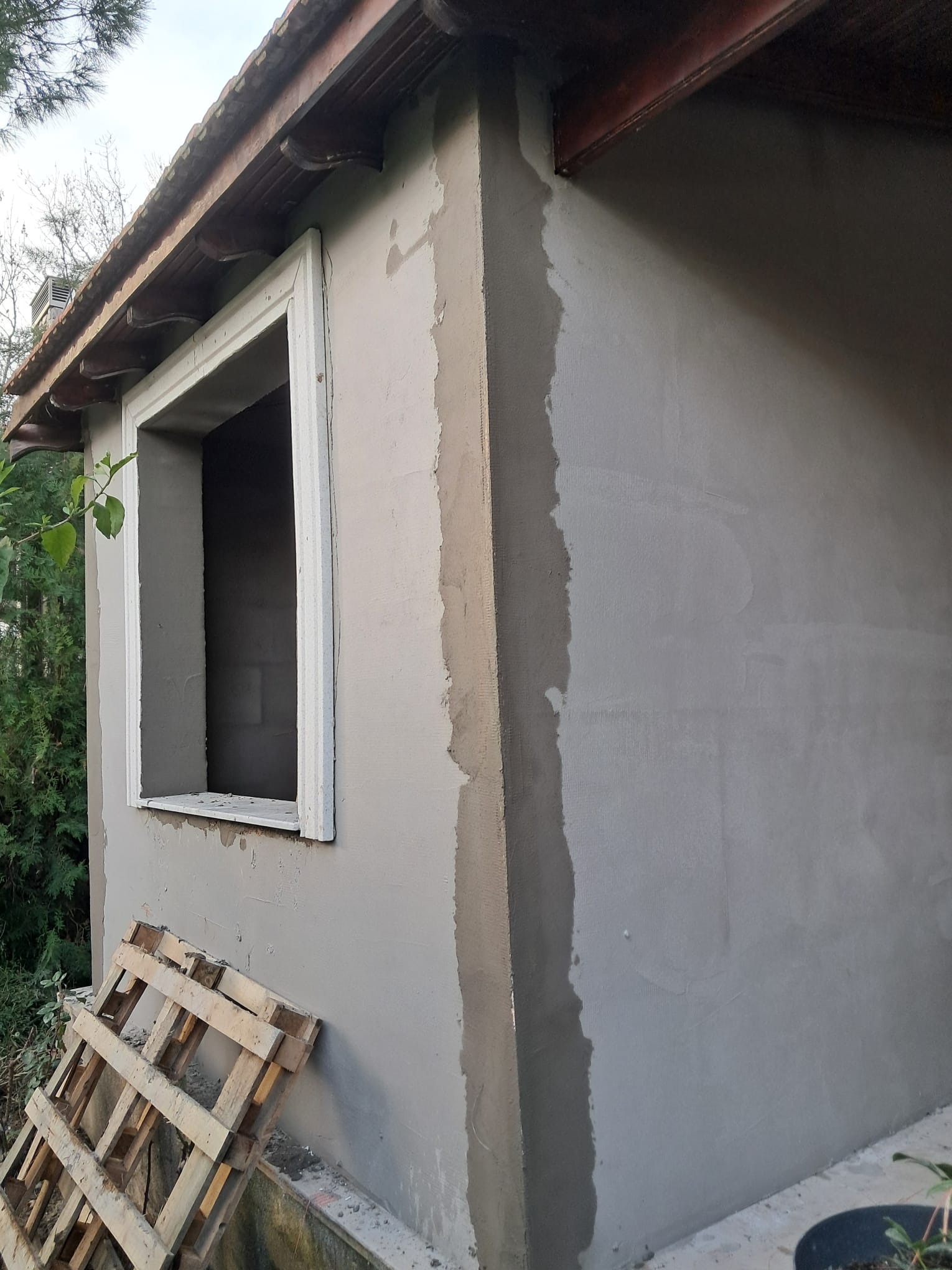 Dış cepheye mantolama yapıldı, iç cephe ve tavana fileli kalekim çekilerek mantolama sıvası yapıldı. Dış cephe mantolama üstüne file çekilerek mineral sıva ile tamamlandı ve boya aşamasına gelindi.
