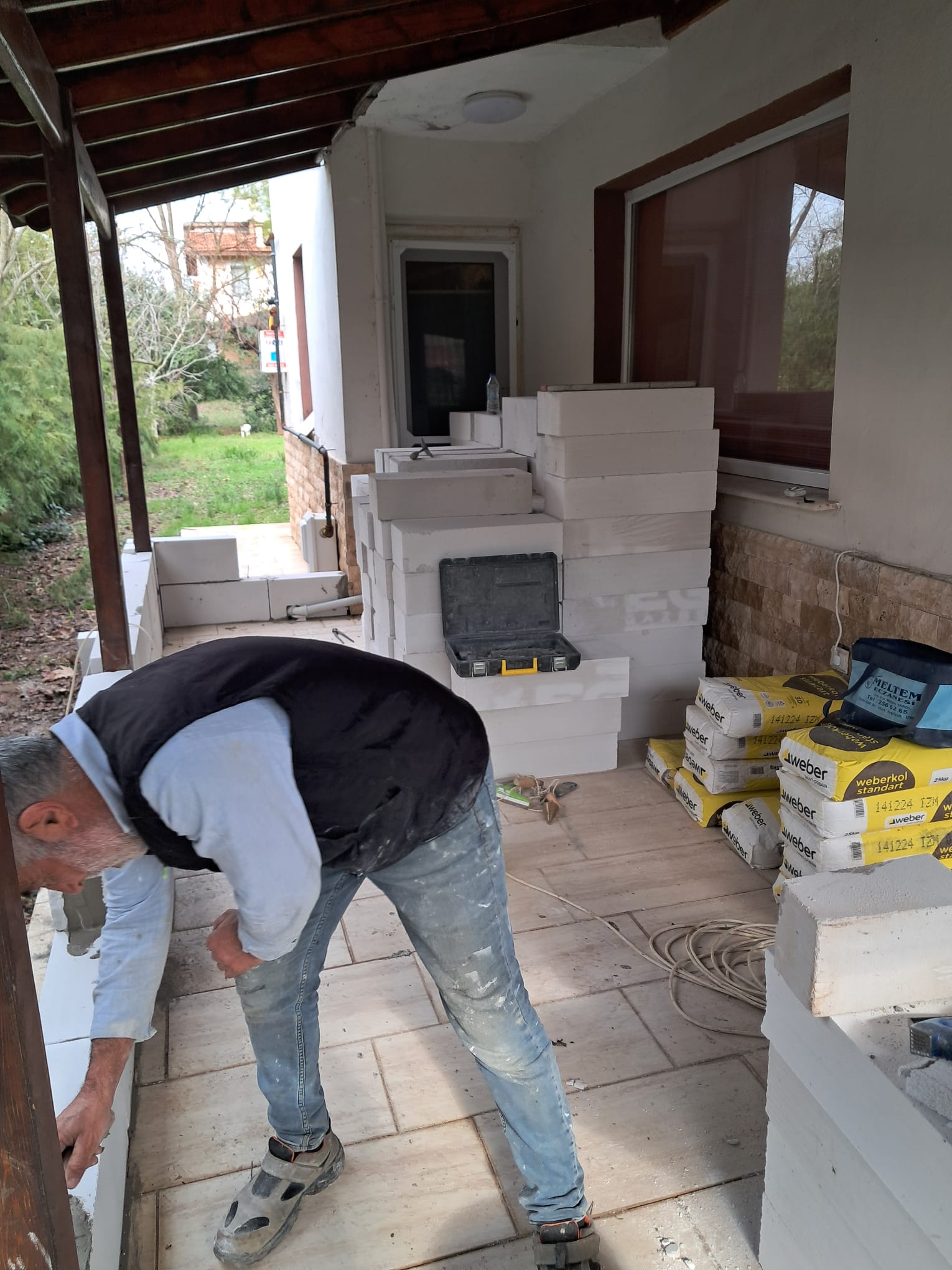 Teras altına bir oda ilave yapılması istendi. Bizde önce 15lik gazbetonlar ile duvarlarımızı ördük.